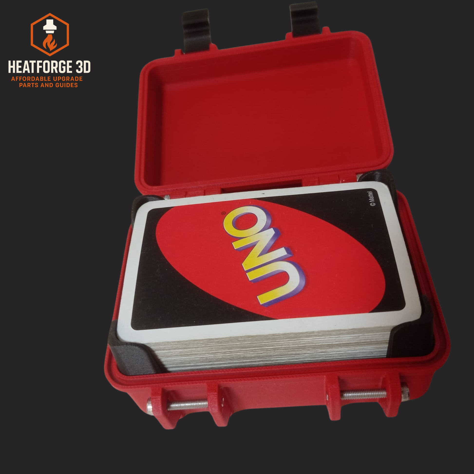 Onko UNO-korttikotelosi hukassa tai hajonnut ja valmis eläköitymään. Tai kaipaatko kadehdittavan hienoa koteloa, jonka voi vaikka laittaa vitriinikaappiin näytille. Tässä on UNO-kortteille suunniteltu kotelo, joka kestää ja pitää korttisi varmasti tallessa ja kunnossa. Ei anneta pahvisten koteloiden pilata hyviä kortteja ja pelejä, sillä tässä on parempi ja kestävämpi ratkaisu.
